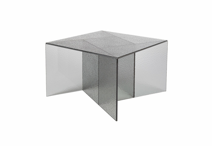 smooth and rippled glass converge at the tables centre, as each panel intersects the tables transparency deepens. A mix of visual