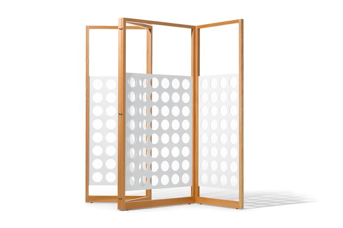 Der Paravent von Egon Eiermann wurde 1968 von ihm für das Foyer und die Sitzungssäle des ›Langen Eugens‹, dem Abgeordnetenhauses des Deutschen Bundestags in Bonn entworfen. Das Gebäude wurde zum Wahrzeichen der Stadt und ist prägnante Erinnerung der jungen deutschen Demokratie.