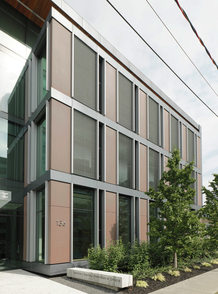Die ETFO (Elementary Teacher’s Federation) vertritt über 78.000 Lehrer in den öffentlichen Grundschulen von Ontario. Der neue Hauptsitz wurde so konzipiert, dass ihnen ein qualitativ hochwertiges Arbeitsumfeld zur Verfügung steht. Das ist eines der energieeffizientesten Gebäude in Toronto und wurde dort als erstes Bürogebäude mit dem LEED Platinum-Zertifikat ausgezeichnet. Anhand des Bauwerks wird Studenten, Schülern, Bürgern und Entwicklern aufgezeigt, dass Architektur aktiv zu positiven Veränderungen und nachhaltigem Städtebau beitragen kann. Fotos: Ditz Fejer
