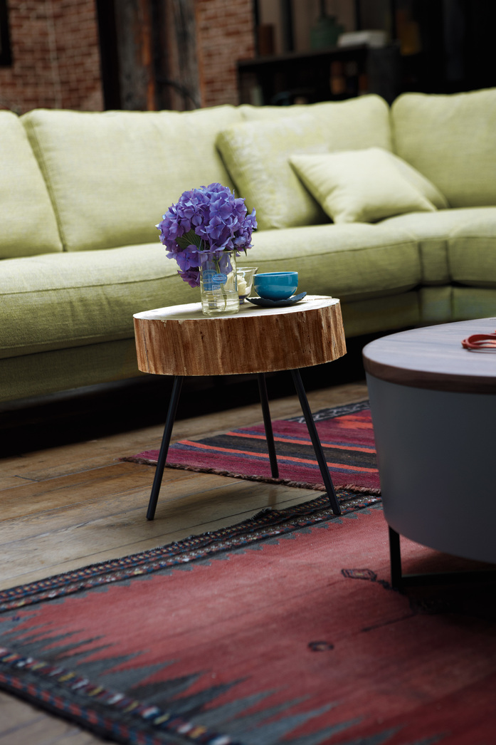 Höhe 38 cm: 40 - 45 cm (rund) Höhe 49 cm: 40 - 45 cm (rund) Platte: Esche massiv, roh – Durchmesser variiert zwischen 40 und 45 cm Füße: Stahl, glanzchrom oder lackiert in Signalschwarz