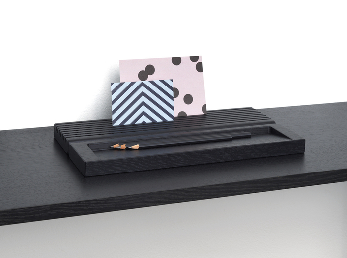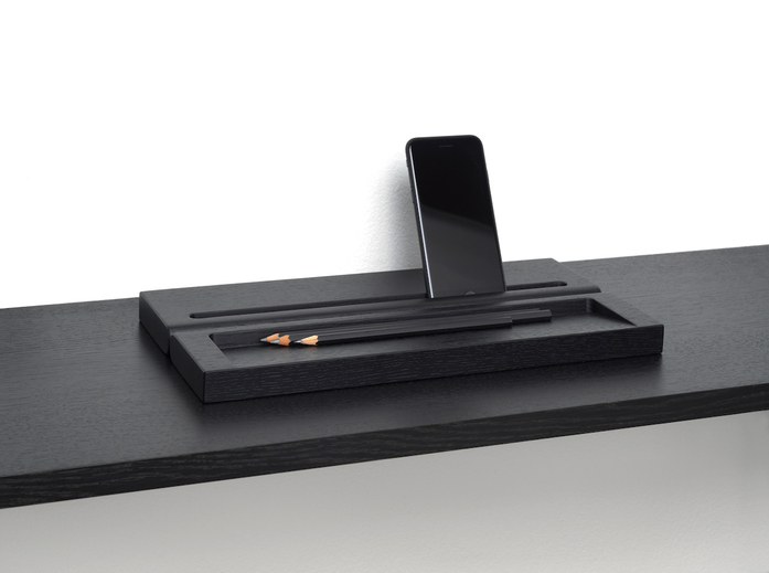 Gutaussehende Assistenten. Die Ablagen der Linie ESSENTIAL sorgen für Übersicht und Ordnung im Entree, auf dem Schreibtischund überall da, wo sie gebraucht werden. Die Modelle aus Massivholz halten Schreibutensilien bereit, sie helfen, die Post zu sortierenund bieten einem Tablet-Computer den optimalen Platz. Und sind dabei immer edle Eyecatcher. Besonderes Designmerkmal ist beiallen 3 Modellen der Radius über eine der beiden langen Aussenkanten. Ein weiteres gestalterisches Detail ist die einseitigschräge Innenform der Schale. Stiftablage, Briefsortierer und Tablet-Ständer gibt es jeweils in 2 Varianten, in natur geölter Eiche sowie in offenporig schwarz lackierter Ausführung. Interior-Accessoires, die den Alltag einfach schöner machen.