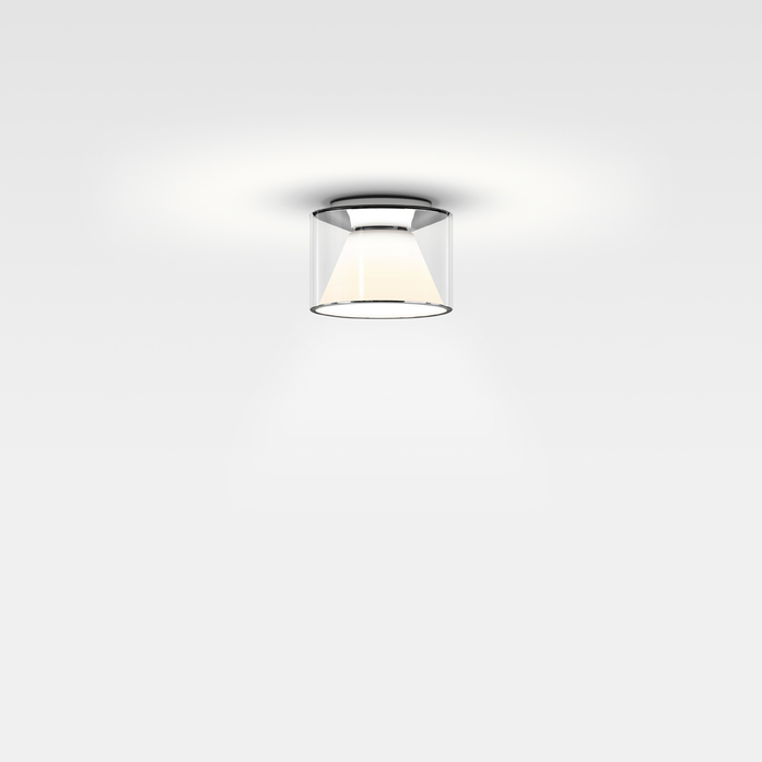 Mit DRUM greift serien.lighting das Spiel von Innen- und Außenform auf und erweitert sein Programm um eine zylindrische Form. Durch ihre grafische Anmutung passt sie besonders gut zu geradlinigen Architekturen, in den Objektbereich, in Privaträume oder ins Büro. Transparenter Glaszylinder und matter Innenreflektor treten in einen reizvollen Kontrast der Geometrien und werden gemeinsam zu einer Leuchte mit perfekt ausbalancierter Lichtwirkung.