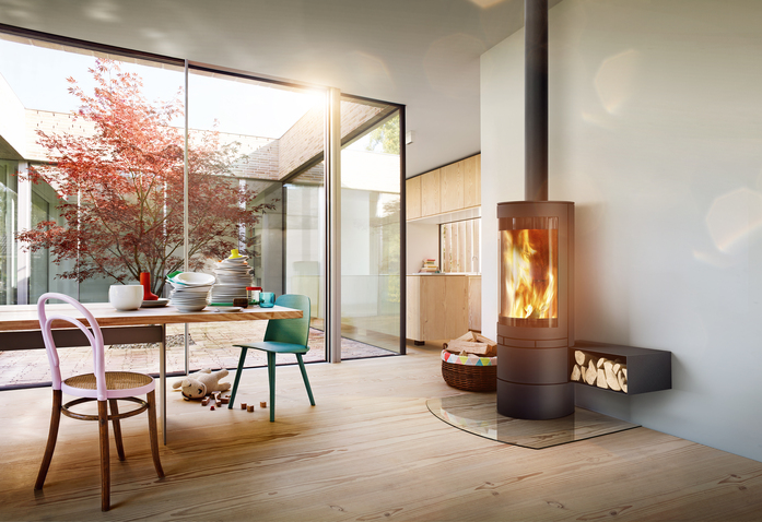 Der „elements rund“ mit großzügiger 180°-Tür setzt nicht nur das Flammenspiel, sondern auch den Lieblingsplatz zu Hause gekonnt in Szene. Aufgrund seiner schlanken Silhouette und des großen Sichtfensters eignet sich der zeitlose Rundofen hervorragend als Raumteiler (Die Brennkammer ist zudem optional drehbar). Durch die Kombination mit seitlichen Boxen, die die Funktion von Sitzbänken oder – bei wandhängenden Boxen – Sideboards übernehmen, wird der „elements rund“ zum eleganten Feuermöbel.