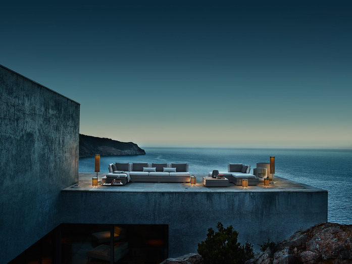 BOXX ist ein modulares Loungeprogramm in kubischem Design. Dabei wird die einladende Polsterlandschaft getragen von einem box-artigen Untergestell aus Aluminium, auf welchem die Rückenelemente nach persönlichen Wünschen montiert werden können. Die Sitzmodule sind mit einer Höhenverstellung ausgestattet und können so nach Wunsch auf Lounge- oder Dining-Höhe montiert werden, zudem bieten sie einen praktischen Stauraum für die Polster.