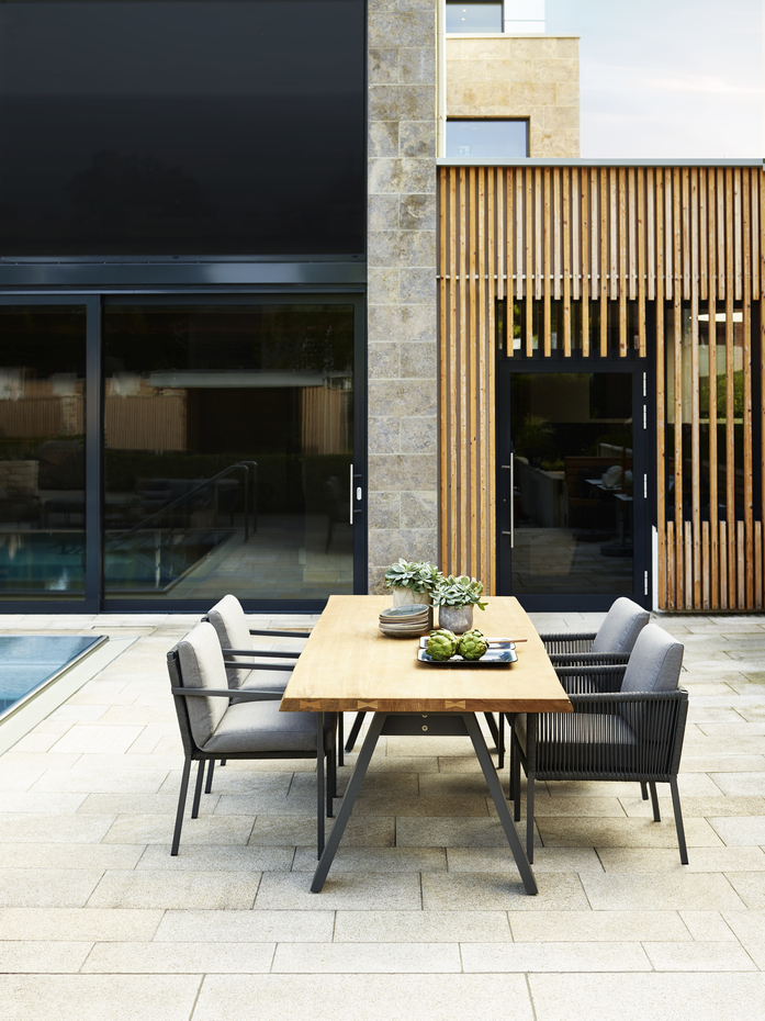 Das Design der Serie CLUB ist geprägt durch eine offene Flechtung aus einer Soft-Touch-Schnur, welche von einem geradlinigen Aluminiumrahmen getragen wird. Die moderne Längsflechtung im Zusammenspiel mit gemütlichen Polstern vermittelt eine solide Leichtigkeit.