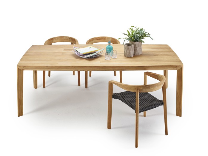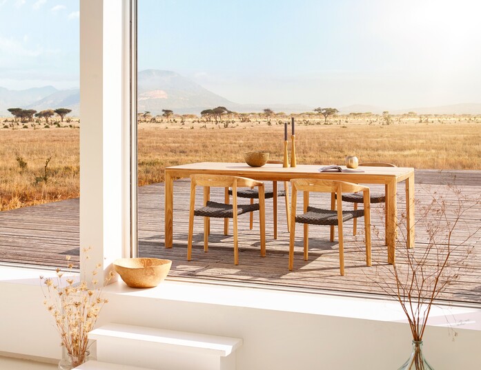 Charakteristisch für den Teak-Sessel LODGE ist der flache Rücken in italienischem Design, der ihm sein elegant modernes Erscheinungsbild verleiht. Der ergonomisch geschwungene Teak-Rücken schmiegt sich an den Körper und läuft zu breiter Armlehne aus. Das Geflecht mit stofflicher Haptik bietet angenehmen Sitzkomfort.