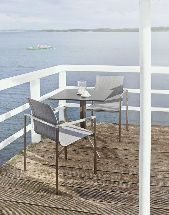 YIX Klapptische – pures Design gepaart mit Funktion. Geprägt ist das Design durch einen Mittelfuss aus dessen Rippen sich die Füße förmlich herausfalten. Ein hochwertiger Klappmechanismus erlaubt das Wegklappen der robusten Tischplatte – wahlweise aus HPL, Teak oder Keramik.