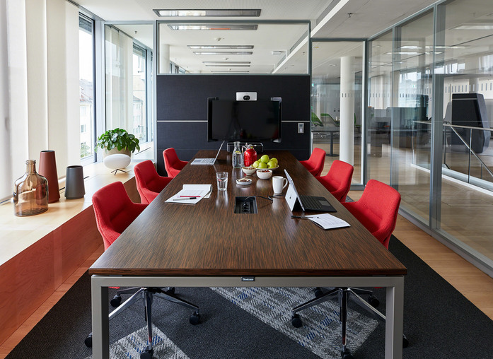 FrameFour Konferenztische ermöglichen eine flexible Raumnutzung mit Fokus auf aktiver Zusammenarbeit – und spannen so den Bogen zwischen Einzel- und Teamarbeit. Ein Besprechungsbereich für informelle und formelle Besprechungen zwischen Führungskräften. Die gute Ausstattung und Auswahl an großen Arbeitsflächen laden die Besprechungsteilnehmer zu produktiven Arbeitssitzungen ein. Ein Bereich für große und kleine Teams. Die breite Palette an Konfigurations- und Ausstattungsoptionen unterstützt die informative, bewertende und generative Zusammenarbeit. Bei Bedarf kann der Raum schnell neu konfiguriert werden.Dieser Raum für Zusammenarbeit ist unerlässlich für das Teilen von Informationen und dem kreativen Gedankenaustausch. Ideen können dank der Whiteboards leicht und schnell geteilt werden.