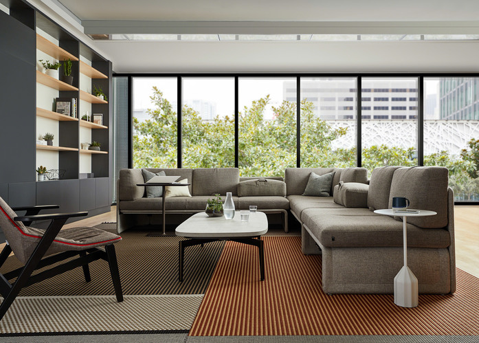 Die Büromöbellinie Lagunitas unterstützt konzentrierte Einzelarbeit und Zusammenarbeit zugleich und eröffnet so endlose Möglichkeiten für die Konfiguration der idealen Arbeitsumgebung. Ob eher konventionell oder relaxed, Lagunitas passt sich problemlos an verschiedenste Arbeitsstile und -haltungen an. Die umfassende Sitzmöbel- und Tischkollektion Lagunitas ermöglicht es, an jedem beliebigen Ort sogenannte „Third Places“ zu schaffen. Die hohen und niedrigen Wände sorgen für das gewünschte Maß an Privatsphäre und unterstützen jede Arbeitsweise. Dank der einzigartigen herunterklappbaren Rückenpolster können die Nutzer zwischen einer aufrechten und einer entspannt zurückgelehnten Haltung wechseln.