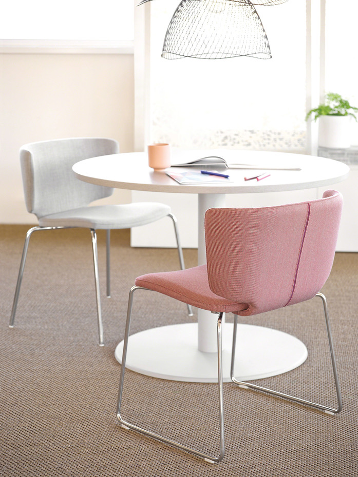 Der Wrapp Stuhl kombiniert eine bequeme, ausladende Rückenlehne mit einer großzügig gestalteten Sitzfläche, die für mehr Komfort und Unterstützung leicht geneigt ist. Ein eleganter, vollständig gepolsterter Stuhl mit klaren Linien, der vielfältig einsetzbar ist. Stoffbezug oder Leder, Fußgestell in der umweltschonenden Oberflächenausführung Chrom3.