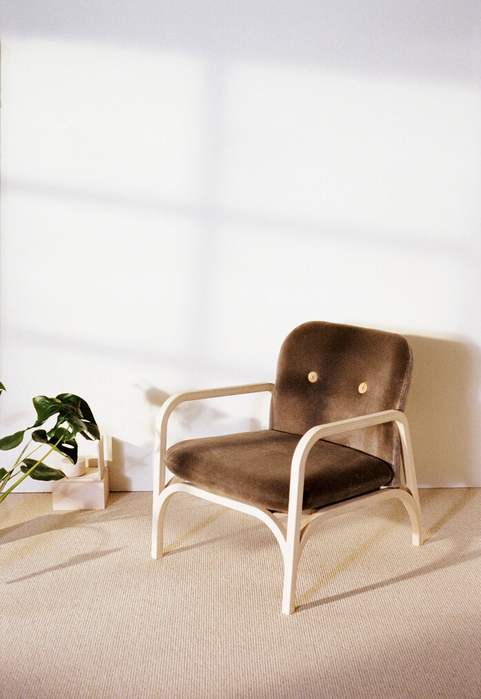 The new Button easy chair shares the same task as its predecessor, the Button sofa, to fit just as comfortably into a retirement home as it does into a design-conscious young person’s first apartment. Design duo Front have taken a playful approach in creating a furniture series that literally grows into its task. Large wooden buttons that contrast with the upholstery allow you to attach cushions, sheepskin or other accessories to the sofa. A side table can be added to the new, smaller easy chair. Button is a modern interpretation of the superb craftsmanship that Swedese has built up over the years, as expressed in the use of the classic bentwood, with the easy chair’s legs gently transitioning into a solid handle. Beautiful and at the same time practical for sitting down and standing up more easily.