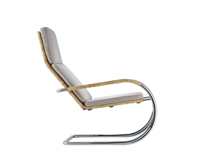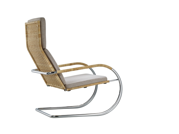 TECTA-Geflecht, gepolsterte Stoff- oder Lederauflage, mit Knöpfen befestigt (auf Wunsch ohne Knöpfe)