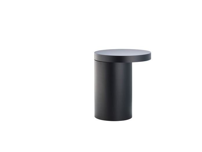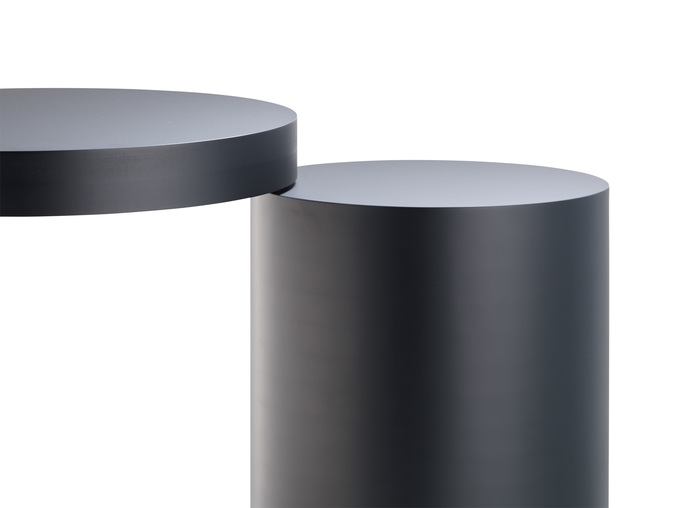 Wolfgang Hartauers Tische sind kleine Wunderwerke. Zylinder, wie Skulpturen, die Räumen Ausdruck verleihen. Vor ihrer Konstruktion stand die Suche nach einem passablen Couchtisch. Nichts Passendes gefunden? Hartauer machte aus dem Mangel eine Tugend und entwarf selbst. Der Ulmer, der in München Architektur studierte, schuf aus MDF Ringe, die sich nahtlos wie Jahreskreise eines Baumstammes aufeinander fügen. Dass der Tischfuß des größeren Möbels innen hohl bleiben würde, hatte für ihn einen schönen Zweitnutzen: Stauraum schaffen.