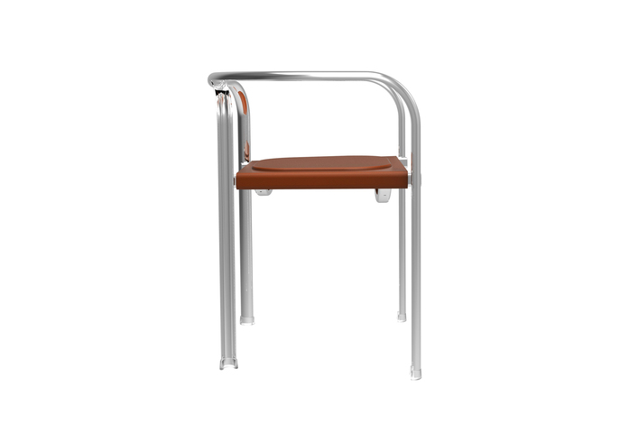 Der Split Chair ist eine Neuinterpretation des klassischen Stahlrohrmöbels auf Basis moderner Technologien. Durch den Brückenschlag zwischen Hi-Tech und Low-Tech, neuester 3D-Lasertechnologie und traditionellem Rohrbiegen, entstand eine Konstruktion, die Einfachheit und Materialeffizienz auf poetische Weise verbindet. Das Gestell aus pulver-beschichtetem Stahlrohr und die Sitzfläche aus Filz unterfüttertem, robustem Sattlerleder, machen den stapelbaren Stuhl komfortabel und robust.