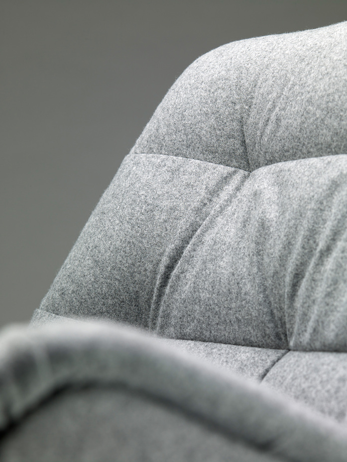 Für den kompakten Sessel 809 haben die Designer Claudia Kleine und Jörg Kürschner von Formstelle die gestalterische Sprache des 808 aufgenommen: Die charakteristische Formgebung der sich um den Sitzenden schmiegenden Sitz- und Rückenschale sowie die wohnliche, an Wellen erinnernde Kissen-Polsterung wurde beibehalten. Der Kontrast des weichen Inneren und der äußeren Schale machen den 809 unverkennbar zum neuen Familienmitglied des Programms 808. Mit seiner geringeren Rückenhöhe und der im Vergleich zum „großen Bruder“ nicht vorhandenen Kopfstütze wird der neue Sessel zum sichtlich verwandten, aber eigenständigen Möbel. Dabei bietet er höchsten Komfort und lädt zum Verweilen ein. Auch ergonomisch und konstruktiv ist der 809 durchdacht – als Drehstuhl mit automatischer Rückstellfunktion verspricht er maximalen Komfort. Seine Individualisierbarkeit im Hinblick auf Bezugsstoffe- und Materialien machen ihn zum wohnlichen Begleiter – ob im privaten Wohnzimmer, in der Hotellobby oder in modernen Office- und Wartebereichen.