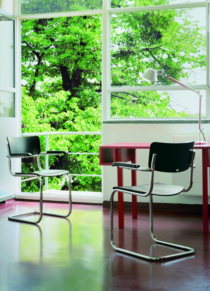 Im Hinblick auf die Frage nach Originalen im Design definiert Dr. Klaus Klemp für Thonet die serielle Produktion – im Gegensatz zur Kunst – wie folgt: „Design als Original ist ein authentisches, gestalterisches und qualitativ präzises und funktionierendes Produkt mit eigener Charakteristik. Dabei gibt es originäre Schöpfungen und konsequente Entwicklungen“ (Stahlrohrmöbel/Tubular Steel Furniture, 1999). Und so ist es nur konsequent, dass auch einige der absoluten Stahlrohrklassiker der Bauhauszeit nun in Farbe auf den Markt kommen: Einer der ersten Freischwinger überhaupt, der als hinterbeinloser Kragstuhl in die Geschichte eingegangene S 43 von Mart Stam, wird in Schwarz-Weiß-Kombination ebenso viel Aufsehen erregen wie in Tomatenrot.