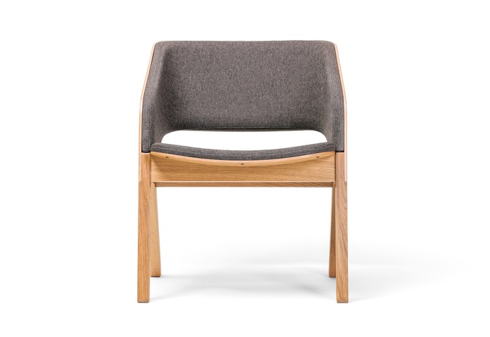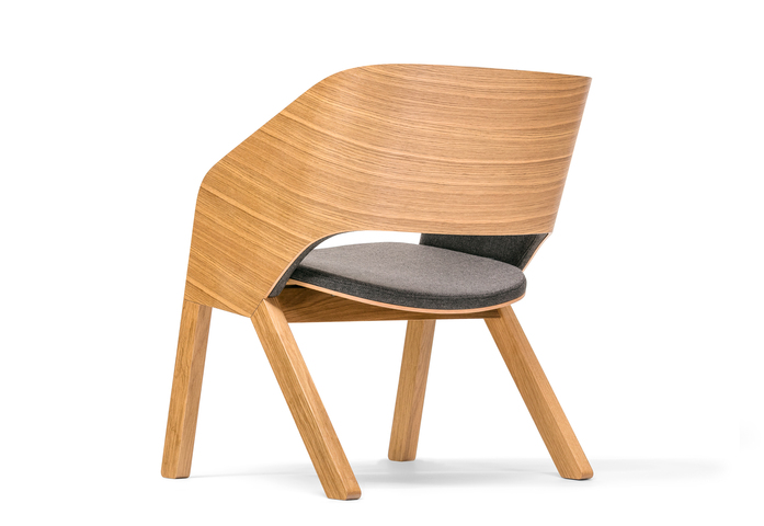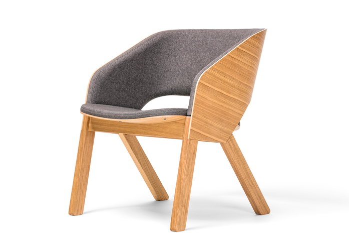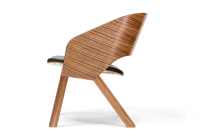 Ebenso wie die anderen Modelle der Kollektion kombiniert auch der Lounge-Sessel Merano massive Füße mit gebogenem Sperrholz im Sitz und in der Lehne. Die typische Form der Rücken- und der Armlehne sind diesmal zu einem Stück verbunden und bieten in der Innenseite eine angenehme Polsterung an.