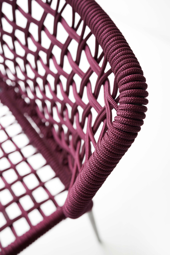 Corda ist eine moderne, stapelbare Stuhlfamilie bestehend aus Stuhl, Armstuhl, Lounge und Barstuhl, die ihren Einsatz sowohl im Innen- als auch im Außenbereich findet. Das Gestell aus Stahl ist in zwei Lackfarben erhältlich, die farblich auf die handgewobenen Seile, die den Rücken und die Sitzfläche bilden, abgestimmt sind.