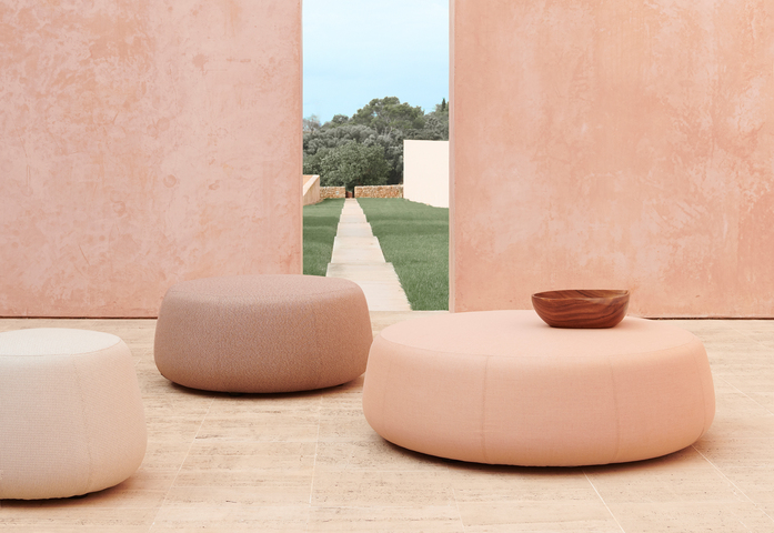 Diese weichen Sitzinseln sind ein Entwurf von Monica Armani. Sie gab den NOMAD Poufs eine harmonische, gewellte Form. Raffinierte Stoffe verleihen ihnen eine luxuriöse Ausstrahlung. Dank drei unsichtbaren Füßen scheinen die Poufs zu schweben. Die vielfach einsetzbaren Poufs gibt es in drei Größen; gemeinsam stellen sie eine hübsche Komposition dar.
