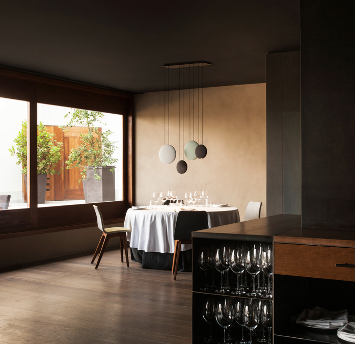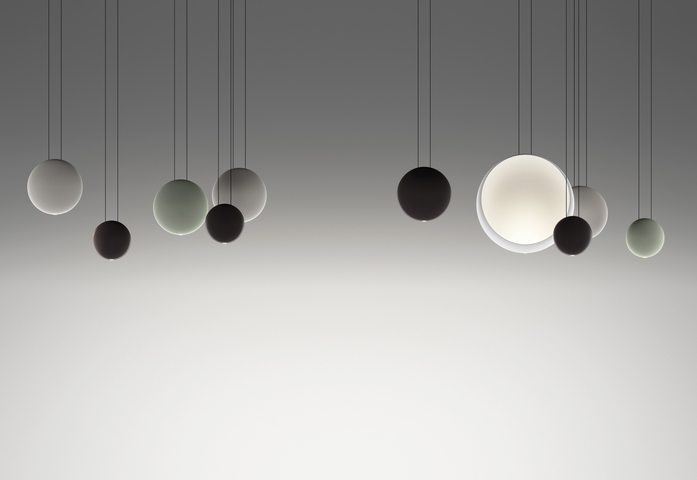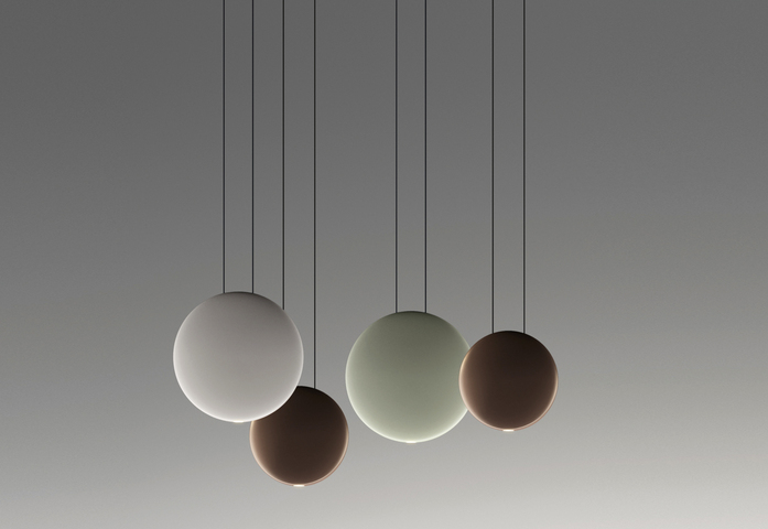 Die Leuchte Cosmos ist ein Design von Lievore, Altherr, Molina. Die Kollektion Cosmos, eine Familie aus Pendelleuchten mit flachen Volumen und in unterschiedlichen Größen, erzeugt eine optische Täuschung von scheinbar in der Luft schwebenden, herabhängenden Sphären. Vibia vertreibt die Leuchten Cosmos in verschiedenen Ausführungen: matt-dunkelbraun, mattgrün, matt-hellgrau und mattweiß. Durch die Nutzung der LED-Technologie ist die Lichtquelle komplett in das Innere jedes einzelnen Elements integriert.