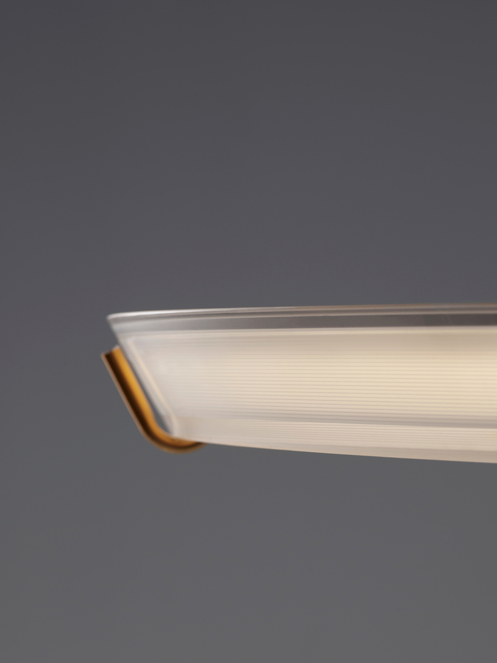 Bei den Pendelleuchten Halo Jewel, einem Entwurf von Martín Azúa, handelt es sich um elegante Kompositionen aus linearen und kreisförmigen Teilen. Die Kollektion Halo Jewel präsentiert das Licht als ein kostbares Element, das in extrem leichte Strukturen eingefasst ist und frei im Raum schwebt.