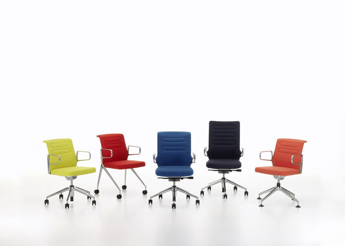 Mit den verschiedenen Modellen der Bürostuhlfamilie AC 5 Group lassen sich moderne, heterogene Bürolandschaften in einer durchgängigen Ästhetik einrichten. Dabei decken die eleganten, hochwertigen Stühle - vom vollergonomischen Bürostuhl über den funktional reduzierten Studio- oder den Konferenzstuhl bis zum flexiblen Stuhl auf Rollen - vielseitige Einsatzgebiete ab. So wird die AC 5 Group mit der charakteristisch abgewinkelten Rückenlehne in Open Space Offices zum übergreifenden ästhetischen Verbindungsglied.