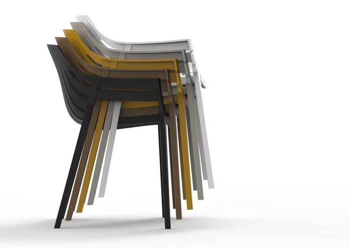 Spritz armchair born from the proportions and the harmony of a shell, following the rules of the Italian style: proportion, simplicity and harmony. This comfortable and stackable chair is going to complete the Spritz collection, a perfect seating set for your summer dreams.