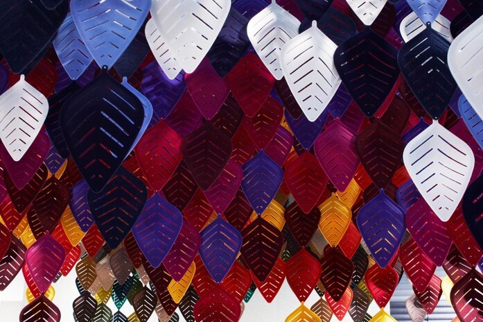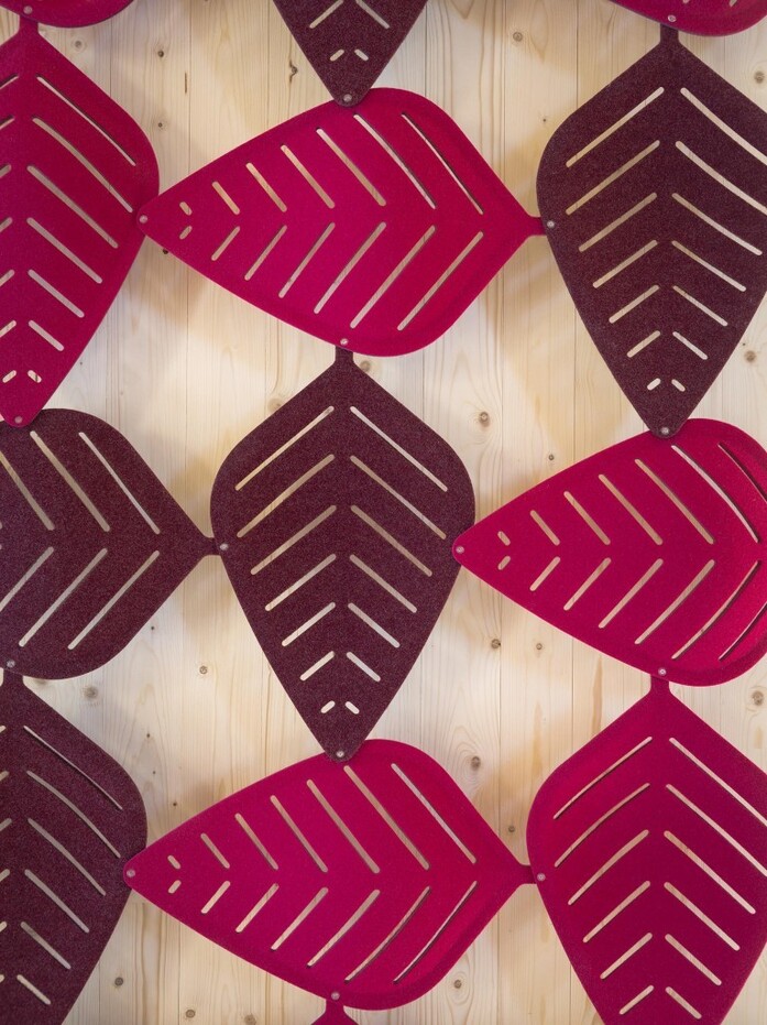The new sound-absorbent Airleaf is designed by Stefan Borselius with the aim to let nature in. The leaf-shaped modules can be combined into sound-absorbent screens in a variety of patterns and formats. Much like the previous success Airflake, Airleaf is made to gently separate and to build a pleasant soundscape, while simultaneously preserving spatial openness. The degree of openness depends on how the leaves are combined. Airleaf is made out of moulded felt and is hung from the ceiling. It is just as simple to mount, as it is to vary. Airleaf is available in 30 different colours.