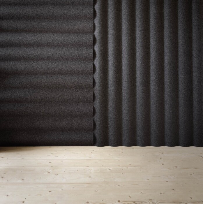 Scala is a playful paraphrase on corrugated iron that simultaneously employs the functionality of the shape. The design of the sound-absorbent Scala is not only developed for visual reasons, but primarily to contribute to a softer soundscape. The moulded felt absorbs sound and the wave-shaped surface effectively breaks the sound waves. Scala is a perfectly simple interaction between material and form. Scala can be hung on the wall or from the ceiling, to discretely reduce the level of noise. Scala is 100% recyclable, and the fabric is approved by EU Ecolabel.