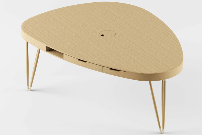 "In its continuous research for innovation, Alias presents plettro, a reinterpretation of the traditional table with drawers and designed by Paolo Rizzatto. From a typological point of view this solution creates a storage space in the table top, which is dedicated to objects in use, whether in a dining room or a home office. Computers, books, notebooks, can be stored there, as well as cutlery and table linens. It is a very interesting option in contemporary life where furnishings, such as the table, are increasingly becoming transversal and the scene of extremely diverse moments and activities. Plettro is characterised by a decomposed top that becomes a very rigid beam structure, formed by two thin tops intersected by a series of wooden elements that divide spaces and in which the drawers slide. On the top of the models designed for home office there is a useful cable management system. Paolo Rizzatto designs two tables equipped with drawers in different shapes and sizes, ideal for home office: the first one is a triangular table with rounded corners, which formally resembles the plectrum, a small instrument used to strike or pluck the strings of a musical instrument. This gives the name to the entire collection and is configured as a three-seat desk. The second is a desk with an organic, welcoming shape that makes it a perfect writing desk. The plettro collection is completed by tables with traditional wooden tops, available in different sizes: square tables (available in 120x120 cm and 180x180 cm), round tables (with a diameter of 120 cm, 160 cm, or 200 cm) and rectangular tables that can accommodate up to ten seats (available in 100x200 cm, 100x240 cm and 100x300 cm). The characteristic element of all the tables of plettro collection is the leg: this consists of a cast aluminium foot from which three turned wooden cylinders branch out and are grafted onto another aluminium element fixed under the table top. A set of components that harmoniously blend thanks to the fluidity of the surfaces. These extremely lightweight legs are true reticular structures, elegant in their design and very effective in their supporting function. At a time of strong transformation in the use of the domestic spaces Alias faces a theme of tradition that becomes contemporary through the plettro collection. Together with Paolo Rizzatto and thanks to a process of careful analysis, Alias succeeds in innovating a product such as the domestic table with drawer from the typological and formal point of view."