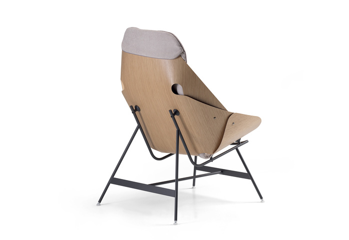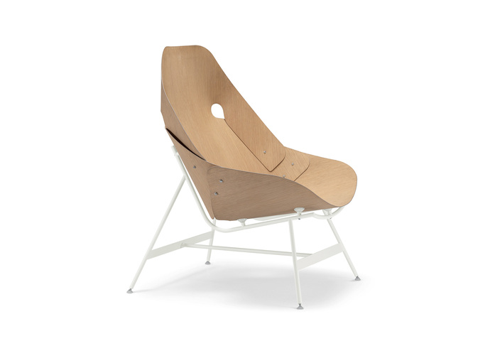 Time was born of the gesture that the designer makes in giving shape to a shell characterised by great stylistic balance and unique ergonomic characteristics. The die-cutting process performed on the sheet, which consists of a sandwich of wood and composites, enables the parts to be fitted together seamlessly, and creates a highly ergonomic, enveloping design.