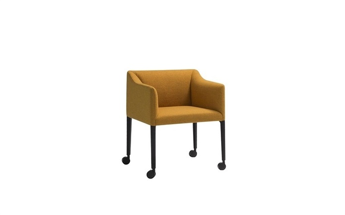Armchair with upholstered seat and backrest and 4 solid beech wood legs (SO1267) or 4 solid beech wood legs with casters (SO1268).