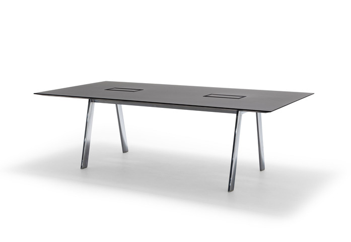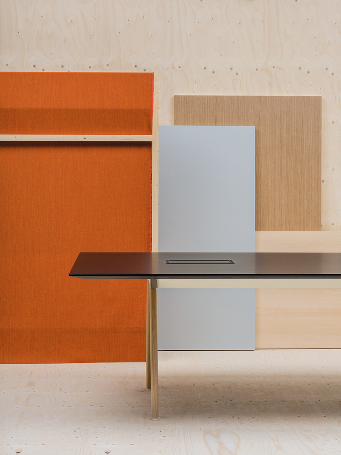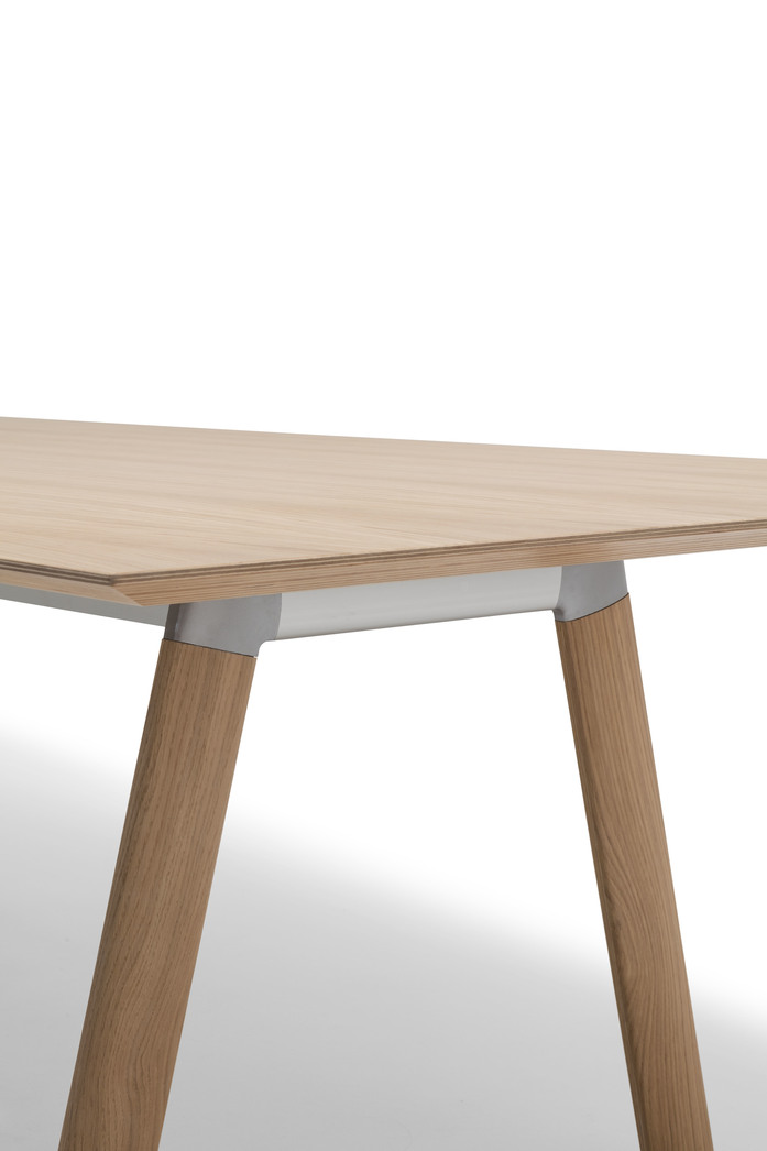 The Radial Conference system of tables incorporates new options of configuration for its systems of connections and an additional option for its frame, that is now also available with oak legs. The different combinations and materials that Radial proposes for its tops are now combined with aluminum bases or wood veneers, which offer multiple configuration options and different sizes for collaboration or meeting spaces. In addition, the Radial series incorporates a new integrated system of connections which minimizes its impact on the top with which its marked technological character is further reinforced. The wiring is hidden inside the legs, both oak and metal.