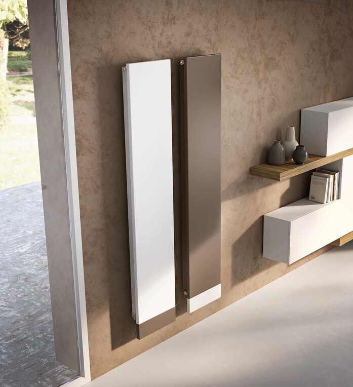 An evolution from the TIF model, TI-Q is a carbon steel radiator with a rigorous and essential form. Its squared off edges are rectangular shaped with limited depth and fit into the various rooms of the house with sophisticated discretion or stand out as required. Its ultra essential design is enhanced by a smooth surface and can be personalised in lively ways: Antrax IT's TI-Q can be fitted with a 'cover' in a range of colours to hide the valves located under the plate. It is an element which can be a natural extension to the radiator in the same colour or attenuate the total purity of its profile with contrast nuances. There are 200 colours available making it a sculptural monolith if camouflaged with the walls or a pop-up relief element if preferred. With high thermal yield, TI-Q is an addition to the Antrax IT HOME product family and is capable of changing 'skin' as required.