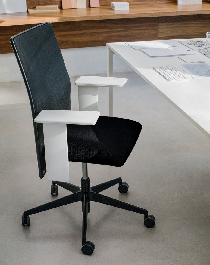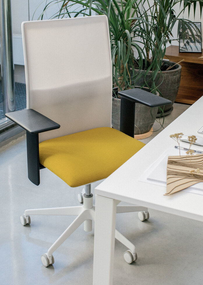 The Planesit is an evolution in Soft Tech — now made even more accessible to a wider audience. Intuitive and invisible technology is embedded into Planesit, leaving a discreet and elegant silhouette that belies its supportive cushioning. Plush padding and an Ergonomic Regulation maximum A rating ensure hours of comfort. The refined 5-way base is available in stool or chair height, in black or white. The protective backrest offers shelter and protection in two heights: low profile for meeting and conference rooms, and high for creative workspaces. Both heights are available in mesh or customizable upholstery, with or without 3D armrests. For optimal comfort, the striking armrests can be further specified in a small or wide width that serves as a support for a small tablet or smartphone.