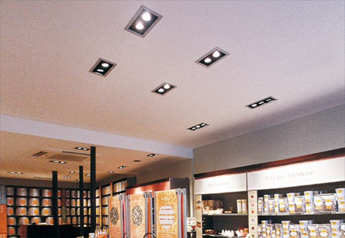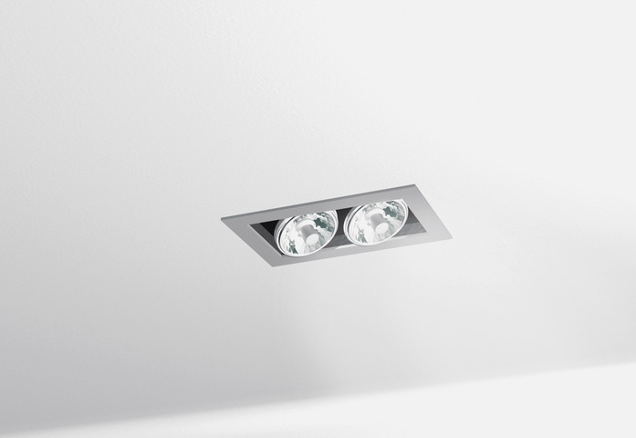 A range of recessed fixed downlights using 12V dichroic halogen, HIPAR51 metal halide lamps and LEDs. The fixtures are fitted with a frame and steel springs for installation in nearly all ceiling types. Body is made from steel and lampholding ring from aluminium. Lamps can be maintained without the need for tools. Remote control gear.