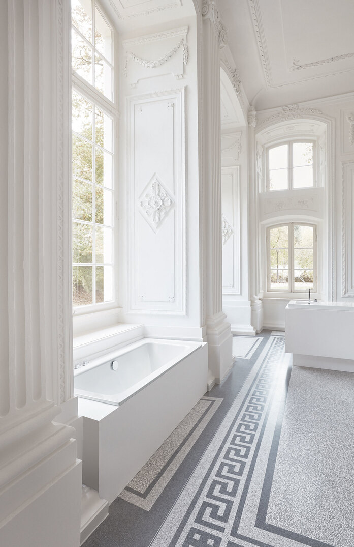 Linearity and versatility are the features of the BetteOne collection. The broad surrounding edge is the characteristic element. It offers comfort and maximum flexibility when positioning the fittings. Thanks to the generous, symmetrical interior and the outlet in the middle, the bath is also ideal for bathing à deux.