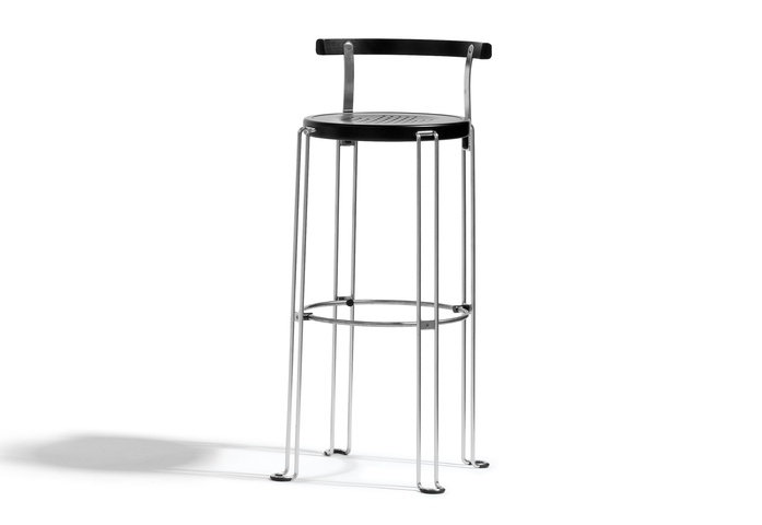 B4-82 is a barstool in birch and steel. The seat can be stained or upholstered. Legs are available in black lacquered steel or stainless steel. B4-82 can among other interiors be used in canteens, cafés and bars. B4 is available in seat height 47, 65 and 82 cm.