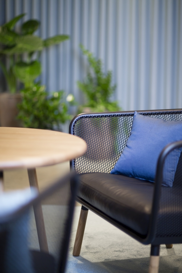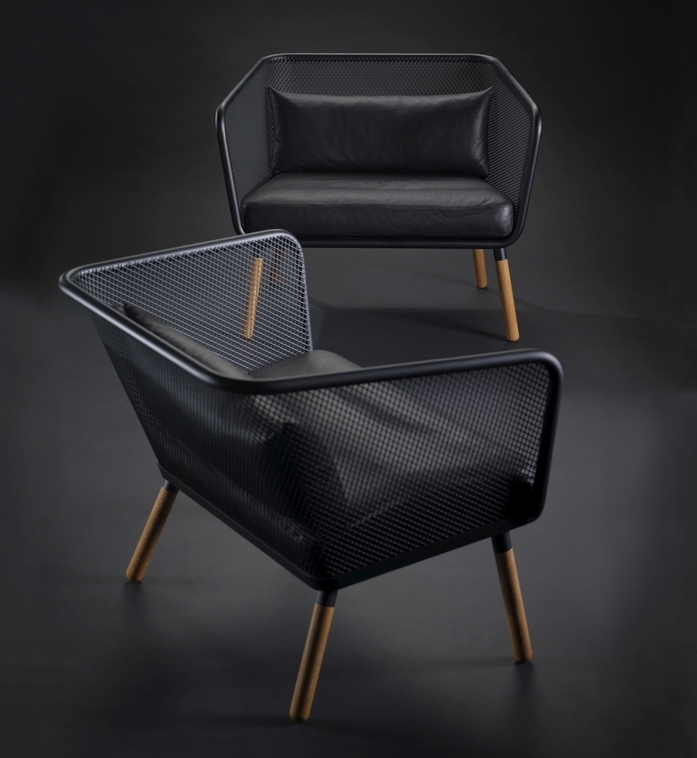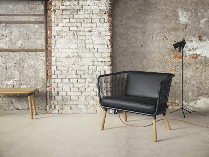 Honken is a generously spacious armchair that also functions as an intimate two seater sofa, made of durable steel and expanded metal but with sensually turned legs of solid oak. With the hope of it becoming a true classic the designer has given Honken all the conditions for living a very long life. With a frame made of sturdy 30 mm tubing, a bottom plate of 6 mm steel and a sitting basket of expanded metal this frame is torsionally rigid and impact resistant and will survive even the toughest environments. And, when you give up, a new owner will take over, stretch out, put on a new coat of paint and sew new cushions. This also makes Honken a good environmental choice and upholds sustainable development.
