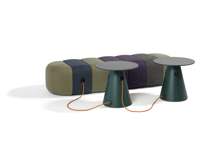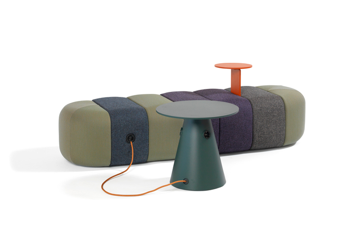 Jack will multiply any wall outlet. Just connect Jack, and you will have USB- as well as standard electric connections on the cone-formed base of the table. Jack can connect to Bob, which offer elements with electric outlets, or can be used as a freestanding table.