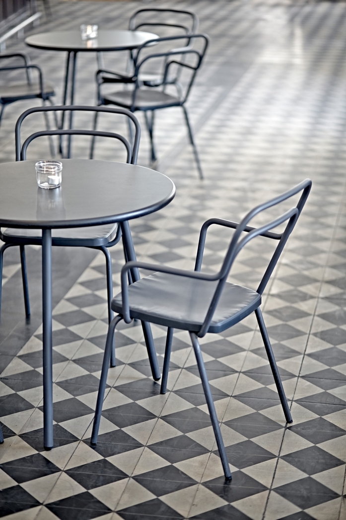The Kaffe family is equally at home indoors and outdoors. The tables in solid oak and valchromat are for indoor use only. There is also a table entirely in steel for outdoor use. If required, the table can easily be dismantled. The Kaffe tables come with a round or square tabletop and are available in a choice of heights. The Kaffe family comprises chair, easy chair, sofa and table.