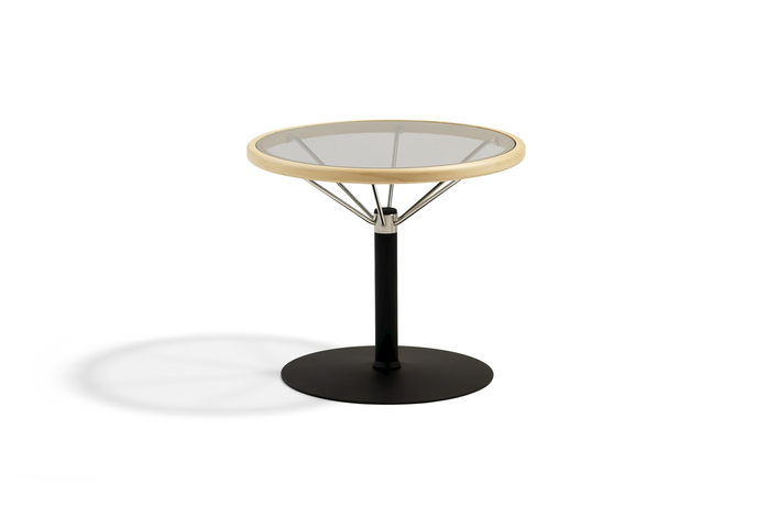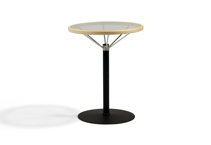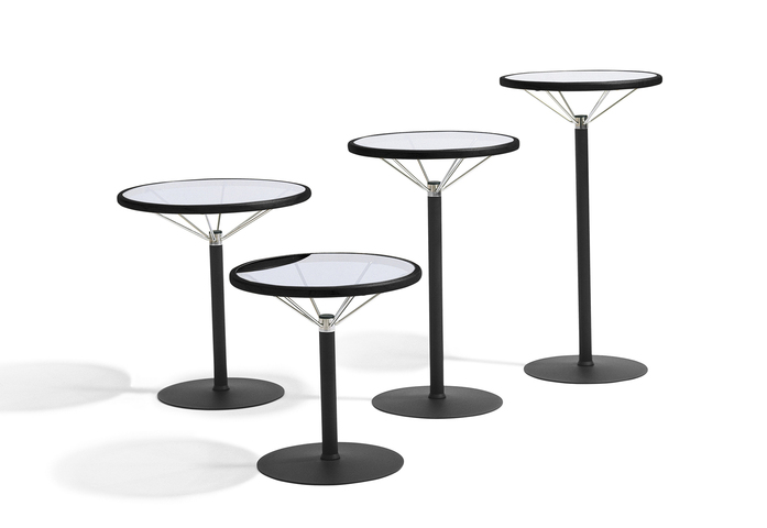 L1 is a table with a glass tabletop and frame of steel. L1 is easy to use as a sideboard or small coffee table and can also be used as a standing table. L1 is available in four different heights and with tabletop in three different diameters.