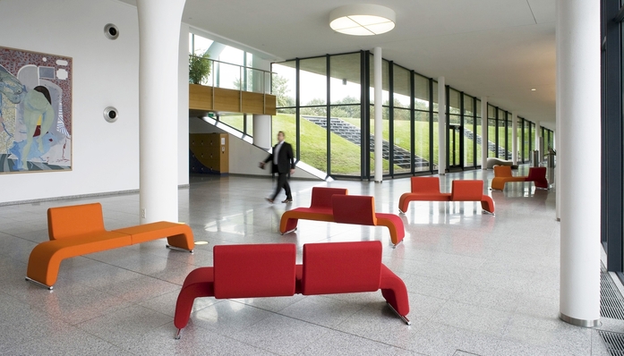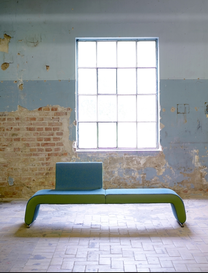 The Polstergeist sofa system provides possibilities of none, one or two backrests. The backrests can also be placed in a tête à tête position. It is possible to have side panels and edges in contrasting colours. Polstergeist can, among other places, be used on fairgrounds, schools and in waiting areas.