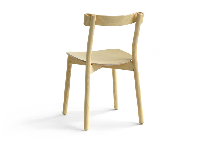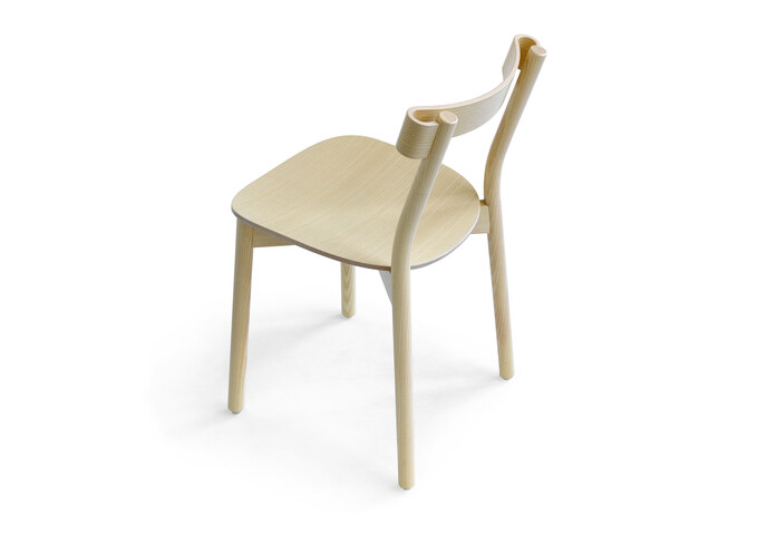 Marcel Sigel offer a unique chair all in wood thanks to an iconic twist to the backrest. Although the ash veneered birch wood is bent to the extremes at the ends, the wood seems to flow effortlessly like a strip of cloth. Or rather a piece of cloth frozen in time!