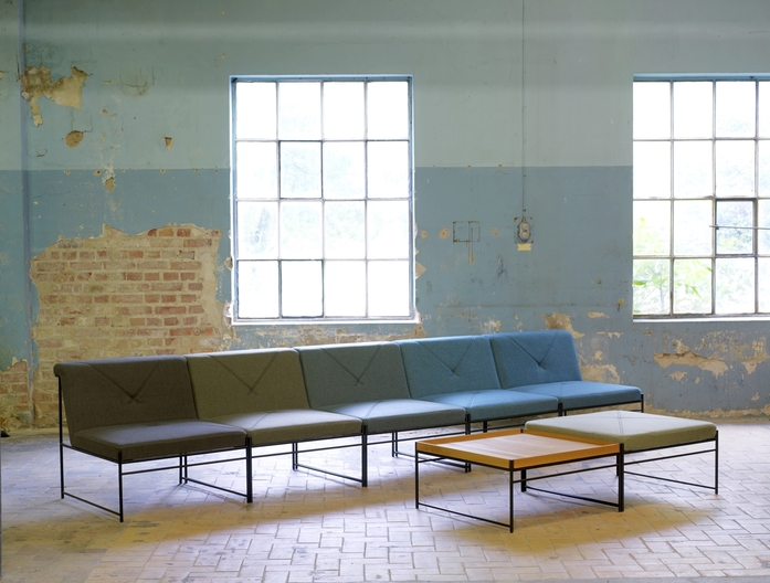 Unit is based on two key characteristics to adjust to different architectural spaces. The first is that it gives a light impression. With its thin seat upholstery held by a frame configured in horizontal and vertical lines, Unit exudes the impression that it is floating above the floor.