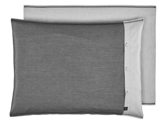 When the sun sets, we normally seek out calm and quiet and withdraw into a private space. The uncomplicated SUNDOWN design on our Easy Satin quality cotton is reversible and either the light side or the dark side can face upwards according to preference. The dark grey Midnight Black colourway features black decorative edging and the pale grey Silver Moon colourway features green decorative edging. Two di erent sides with contrasting colour edging at the foot, as well as contrasting stitching, thus create a cool, masculine design.