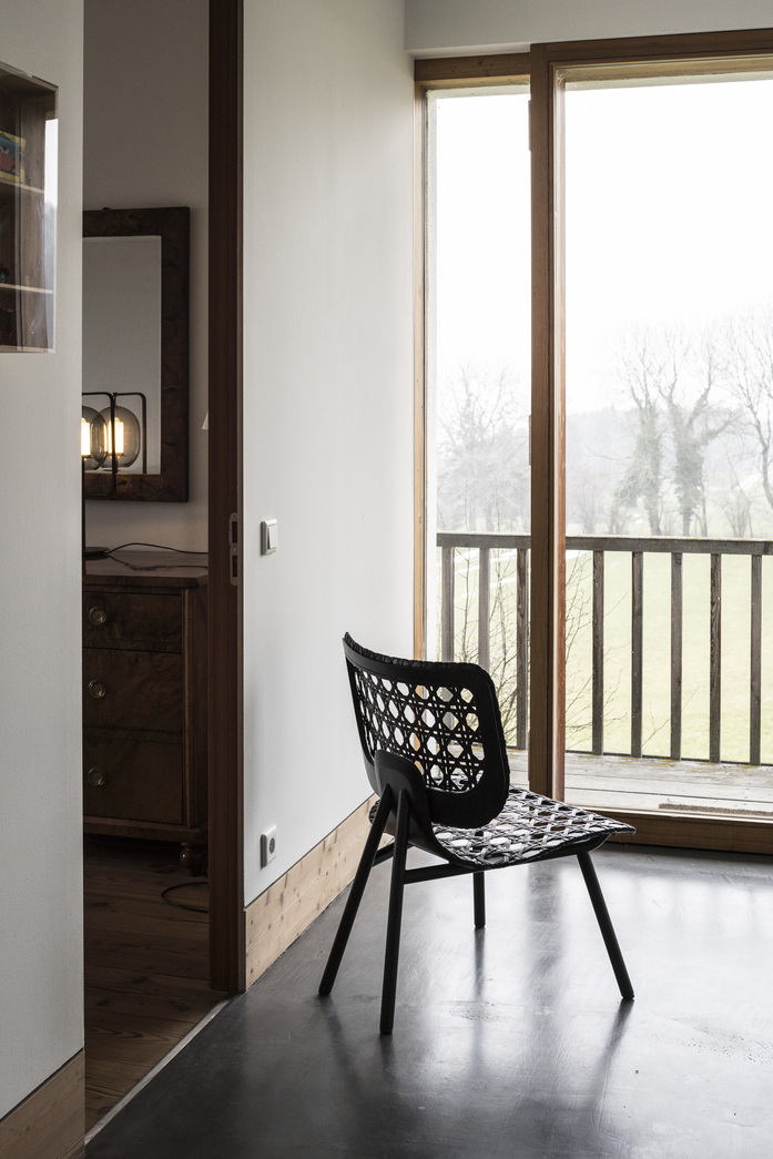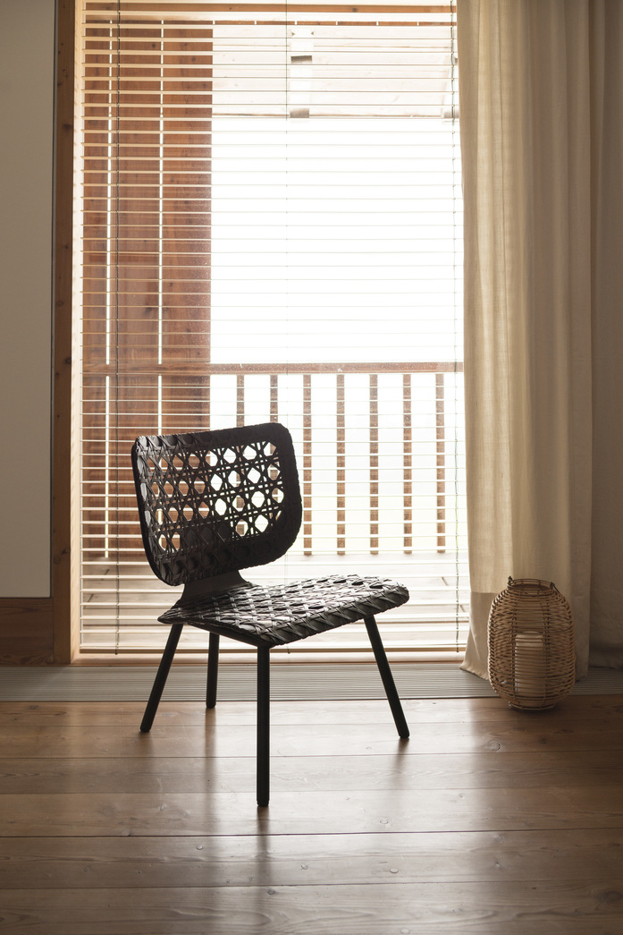 Aërias surprises with formal conciseness, lightness and innovative weaving: the familiar pattern of the Vienna wickerwork is reinterpreted with a changed scale and leather as a material. Just as the look of a type font changes depending on its size, the traditional weaving used for Aërias also gains character due to the multiple enlargement of the pattern.