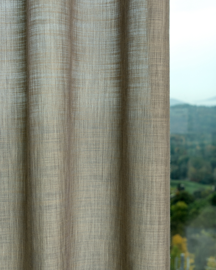 Colourful and finely textured item with an elegant linen-like look in 100% flame-retardant Trevira CS yarns. The interesting multi-coloured faux uni look derives from different effects in the warp and weft yarns.