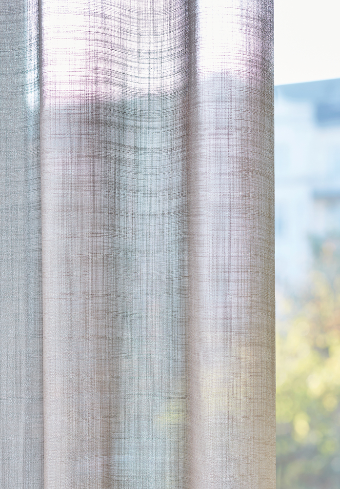 Semi-transparent curtain fabric in Trevira CS; The hallmark of this classic is an elegant, semi-transparent and textured quality which is reminiscent of light linen fabrics. The colour palette is subtle and elegant with muted tones such as sage, old rose and reed green.