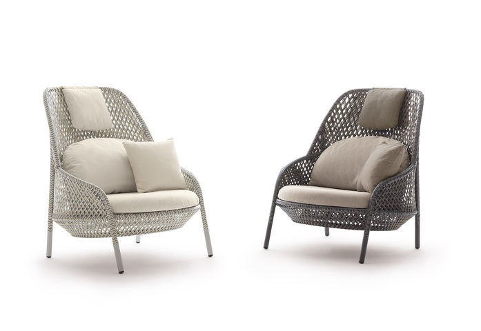 With AHNDA, Stephen Burks has a created another DEDON first — an outdoor lounger with all of the iconic style, ergonomic comfort and luxurious attention to detail that one expects of the finest indoor pieces. Available in wing and lounge chair versions, AHNDA strikes you immediately with its looks, the designer having immersed himself in the rich weaving culture of the Philippines to develop the chair’s signature open weave. Created with weatherproof DEDON fiber, this ‘transparent upholstery’ conveys a feeling of breezy lightness, while ANDHA’s articulated structure, clearly visible underneath, signals a fresh approach to classic lounger design. As you inspect it more closely, AHNDA reveals a level of detail typically associated with a collector’s piece. Knurling on the reinforced aluminum legs, for example, echoes AHNDA’s signature woven pattern, as does a zig-zag stitch on the headrest. A stunning example of the craftsmanship of DEDON’s master weavers, the woven pattern itself consists of three shades of red fiber, giving AHNDA a subtle yet alluring vibrancy.